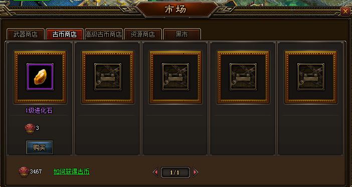 3、古币商店里则可以用古币兑换装备进化材料,强化神兵,让神兵利器更加锋利,削铁如泥。